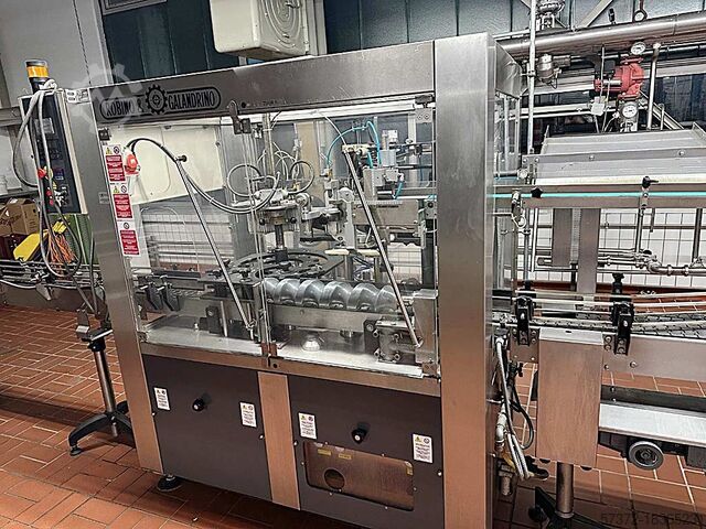 Доступна полная система розлива, стерилизации, укупорки, маркировки, картонирования и паллетирования бутылок для винодельческой промышленности. Производительность наполнения бутылок: 4000 бутылок/час, наборы форматов бутылок: 1л и 0,75л Шлегель/Бордо/Бугундер/0,5л/0,25л, производительность стерилизатора: 4000 бутылок/час, производительность капсул: 8000 бутылок/час, производительность маркировки: 10000 бутылок /ч, производительность укупорки: 10 000 бутылок/ч, форматы картонных коробок: 12 и 6 коробок/12 и 6 коробок, производительность паллетирования: 1000 коробок/час. Компоненты системы: 1) Машина для складывания картонных коробок Normpack Compact Form CF 670/980, год выпуска: 2000, производительность: около 650 коробок/час, 2) Машина для наполнения бутылок Stork VV-24 L.W, год выпуска: 1977, 3) Silmo ST XII/110 v озоновый погружной стерилизатор, Год выпуска: 1983, форматы бутылок: все распространенные винные бутылки, 4) Тестер щелочи Miho LC 2000, год постройки: 2003, 5) Kapsler Robino & Galandrino Monoblocco Fenix 3, год постройки: 2002, 6) Контроль укупоривания Syscona Unicount со счетчиком пробковых и металлических крышек, 7) Этикетировочная машина Гарнеп Лебетта 03.04.18 1320, Год постройки: 2017, в т.ч. 2x Агрегаты для влажного клея, 3 блока SK, система камер для грубого выравнивания бутылок и лазер домино для оттисков, 8) Автоматическая укупорочная машина Adelski PP2004 Longcap, год постройки: 2007, 9) Автоматическая укупорочная машина Adelski MCA PV 6541/1/210 АВМ2104, год постройки: 1999, 10 ) Korker Bertolaso Delta, год постройки: 1977, 11) Машина для запечатывания картонных коробок Normpack NCF-047, год выпуска: 2001, включая устройство термоклея, 12) Упаковочная машина Kettner Robot Junior Packer BE 2-T, год выпуска: 1992, 13) Машина для загрузки поддонов Kettner Pressant Universal 1200, год постройки: 1992, 14) Этикетировочная машина для коробок Weber Legi -Air 40XX, Год выпуска: 2004, 15) Сушилка Okema T3, год выпуска: 1999, 16) Печатная машина по картону Blum CompactLine 3.0, количество головок: 8, возможность печати: двусторонняя, 17) Генератор озона Silmo 40g, год выпуска: 1983, 18) Машина для подъема стекла Schaberger, год выпуска: 1977, включая новую стеклянную головку, Головка на 12 ящиков и столик для бутылок. Доступна документация. Возможен выезд на объект.