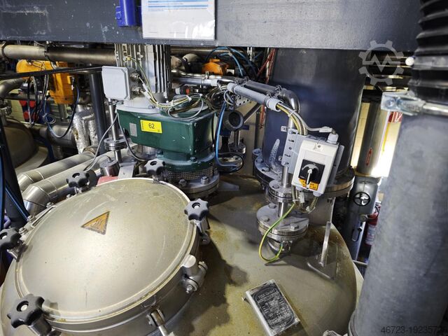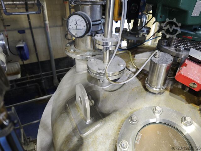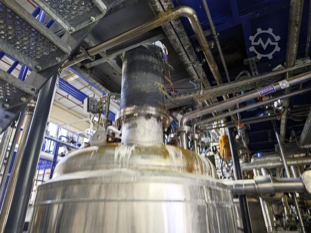 Нержавеющая сталь 316, с рубашкой: 98 л, 3,5 бар, 150 °C // Реактор: 3500 л, 1 бар, 95 °C // С 3-лопастной мешалкой на 3 уровнях (всего лопастей 9) мощностью 3,6 кВт, 250-1435 об/мин — пожалуйста, запросите чертежи! В комплекте один насос