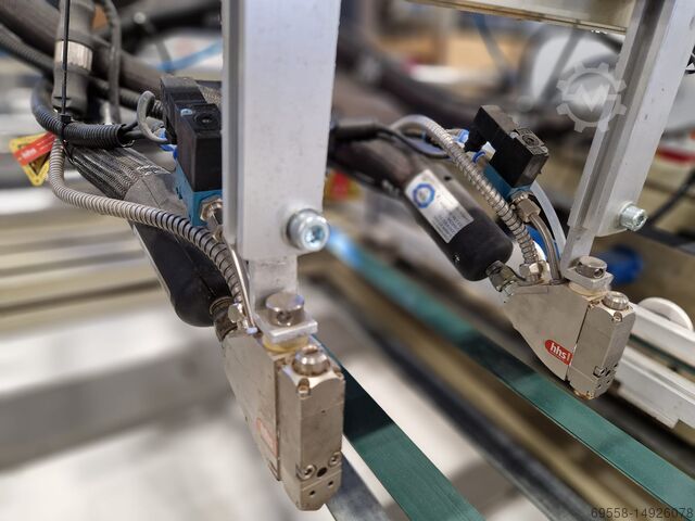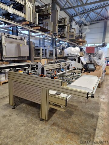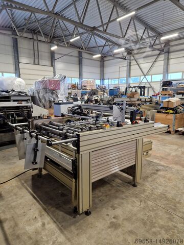 New hot glue system from HHS. Modern version of the software. Completely ready for work. 2 operators. Possibility to install a cold glue system. 8 control channels. Automatic feeder. Fully restored in 2023 and ready for shipping.