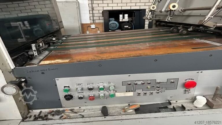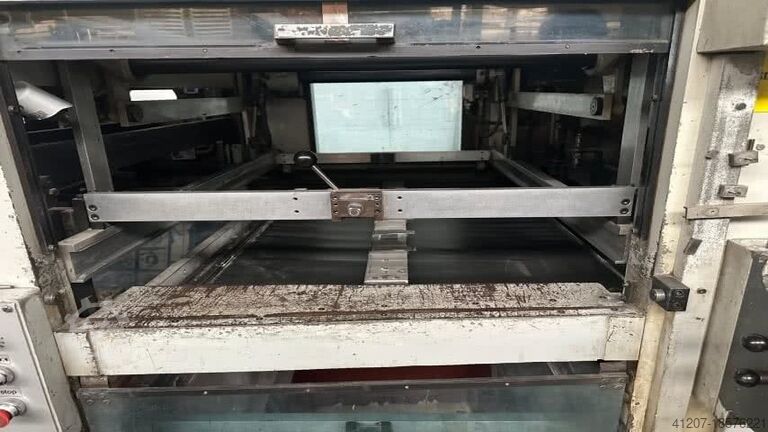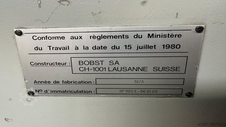Bobst SP 1120-E — это высекальная машина с устройством для удаления этикеток, предназначенная для эффективной и точной высечки. Данная модель была произведена компанией Bobst в 1973 году и находится в Германии. Цены по запросу. Он имеет формат 780 x 1120 мм и может обрабатывать листы размером от максимального 800 x 1120 мм до минимального 380 x 450 см. Машина имеет рабочую скорость до 6000 листов в час и усилие пробивки до 300 тонн. Другие особенности включают платформу, устройство подачи поддонов с устройством безостановочной работы, устройство подачи листов (OS) с функцией обнаружения двойных листов и центральной линией.