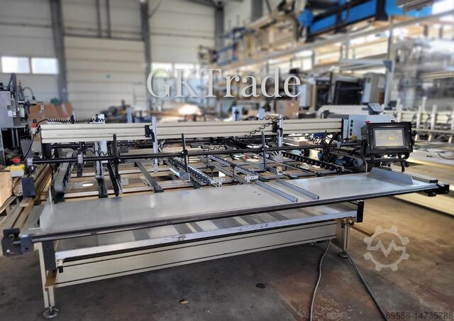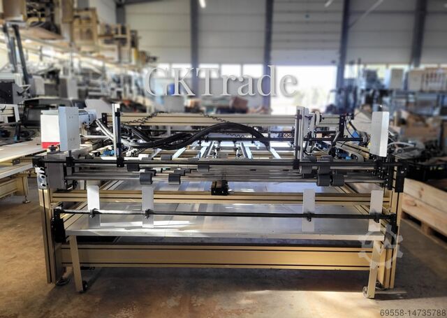Клеевая система наносит клей на заданную длину и позицию по мере прохождения материала через заготовку. Система прижимных роликов обеспечивает идеальное сцепление. Максимальная рабочая ширина оборудования составляет 2200 мм, что позволяет склеивать крупноформатные изделия. Благодаря многофункциональности настроек склеиваемые материалы могут иметь различную толщину.