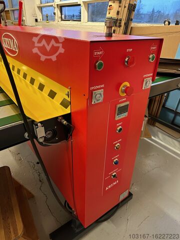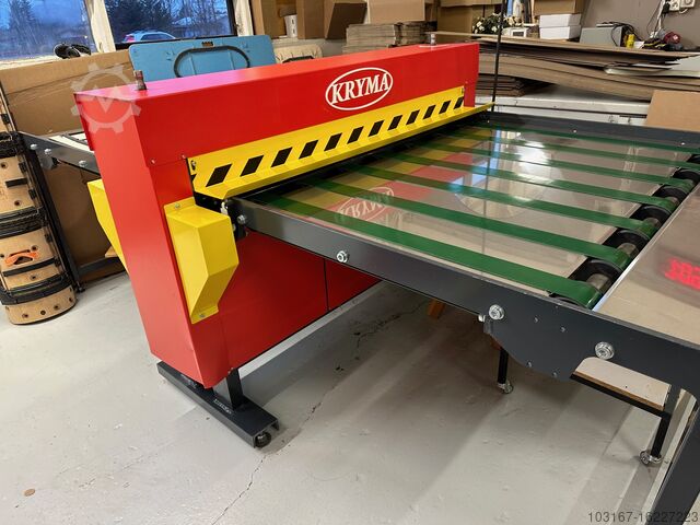 Роликовая высекальная машина Kryma MWP-1500, максимальный размер листа 1500x1300 мм, машина почти как новая, очень мало использовалась. Доступна в любое время. Размер пола 340x190 см. Также имеется автоматический слоттер Kryma SK2800 с автоподатчиком в отличном состоянии + однопроходный принтер Sunthinks SC860 с автоподатчиком.