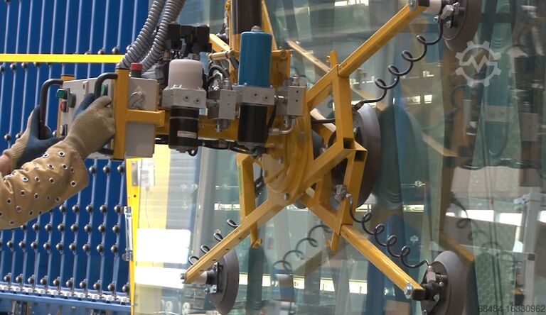 Небольшие листы стекла укладываются вручную на транспортную раму. После размещения листа стекла транспортировка активируется кнопкой.