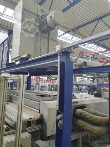 Двусторонний шлифовальный станок с угловой связью, стиральной машиной и автоматической сушилкой.