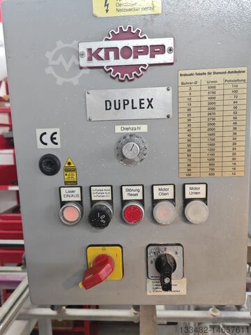 Двусторонний станок для сверления стекла Knopp duplex. Год выпуска 2000 В хорошем состоянии. Boc R Ncjq Umcns Ifnsli Со столом со сферическими роликами, поперечным лазером и бесступенчатой регулировкой скорости. Включая водяное охлаждение