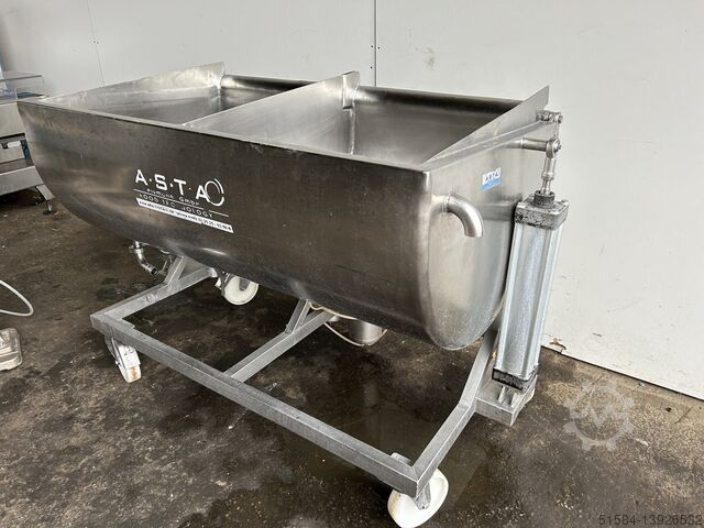 Нержавеющий, резервуар объемом 500 л (два по 250 л), с рубашкой, пневматическим наклоном для разгрузки, мобильный