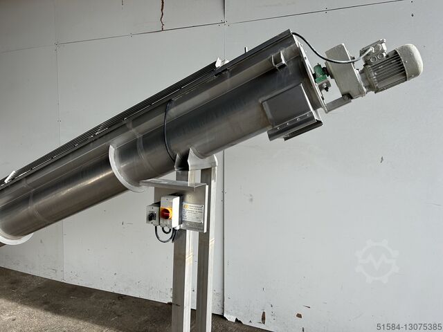 Элеваторный винтовой конвейер DTS Bjc R Ncopta S Hj Ifneli Шнековый конвейер с нержавеющим элеватором, подъем от 400 мм до 1900 мм, диаметр шнека 280 мм, общая длина 5000 мм, верхнее расположение форсунок для распыления воды, 3Ph
