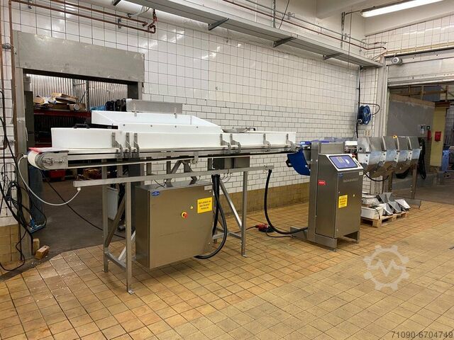 Грейдерная станция Scanvaegt с входной лентой и 8 распределительными станциями год выпуска 2006, ранее использовалась в птицеводстве.