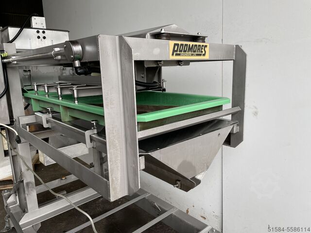 Рама из нержавеющей стали, бункер из нержавеющей стали 50 кг, общая длина 2200 мм, размеры вибрационного конвейера 2000 мм x 600 мм, передвижной, 1Ph