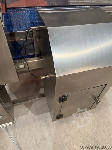 1 x металлодетектор Fortress Technology для обнаружения ферромагнитных включений в фольге, с системой пневматического отбраковки через толкающее устройство в запираемый контейнер.