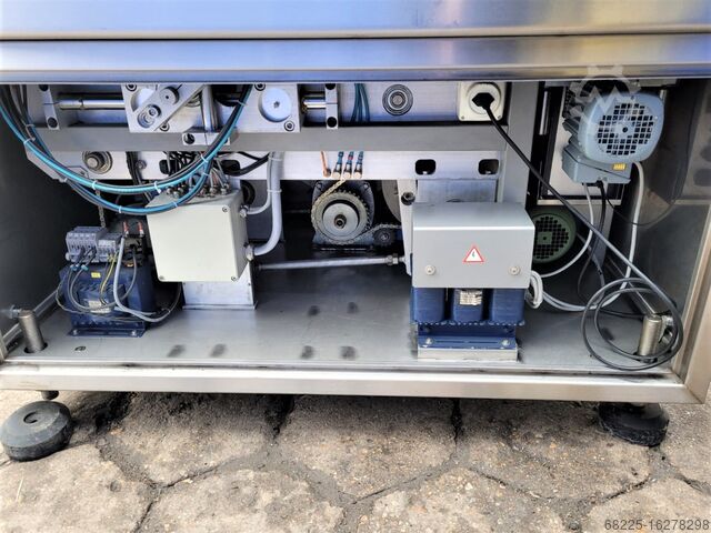 Используемая машина Cryovac CJ50 MD - это машина для упаковки в потоке, способная создавать запайки по всему периметру фольги из одного рулона пленки. Это очень эффективное и надежное устройство, подходящее для упаковки всех видов пищевых продуктов. Кроме того, он способен настраивать параметры для точного размера продукта. Вся конструкция выполнена из кислотостойкой нержавеющей стали, что гарантирует высочайшее качество, гигиеничность работы и простоту обслуживания.