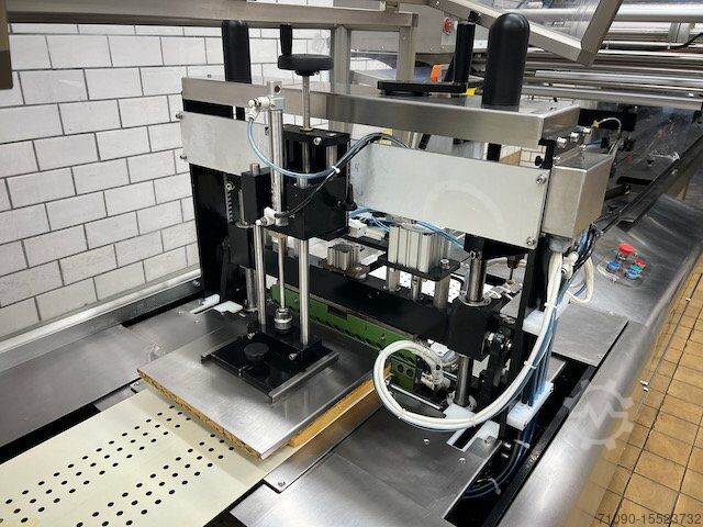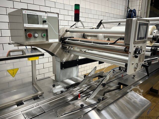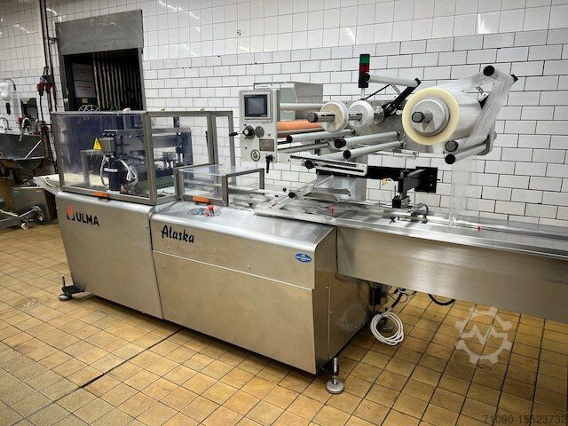 Флоупак Ulma Alaska с сопутствующим газовым миксером модельного года 1999. Максимальная ширина пленки 720 мм, размер продукта 100-250 x 100 x 440 H 15 - 125 мм. Производительность до 40 упаковок/мин.