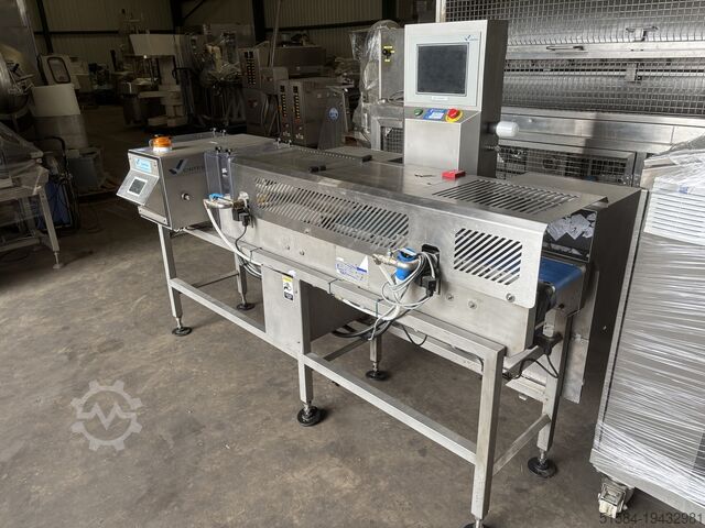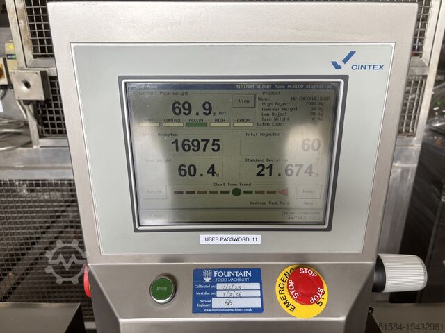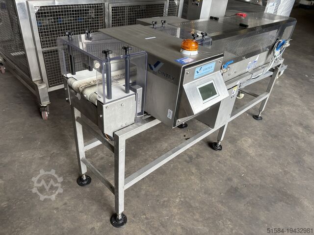 Cintex CS4000 металлодетектор с контрольными весами, из нержавеющей стали, комбинированный металлодетектор с контрольными весами, размер ленты 2100 мм x 150 мм, окно 220 мм x 100 мм, весовая платформа 350 мм x 150 мм, диапазон веса от 20 г до 1 кг, пневматический отбрасыватель в контейнеры для брака, с запасными лентами, 1-фазный.