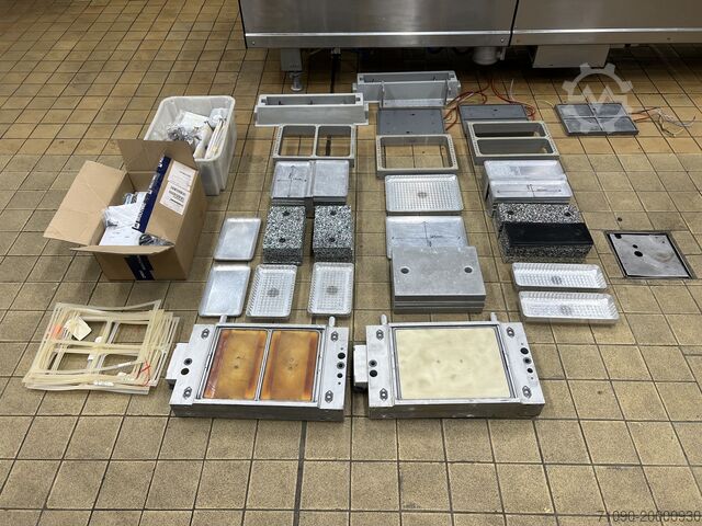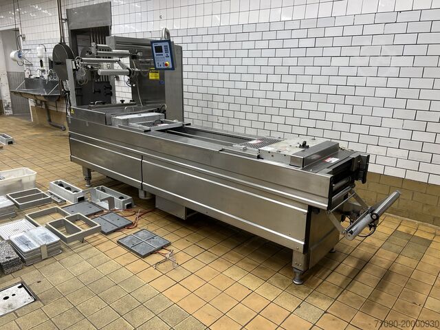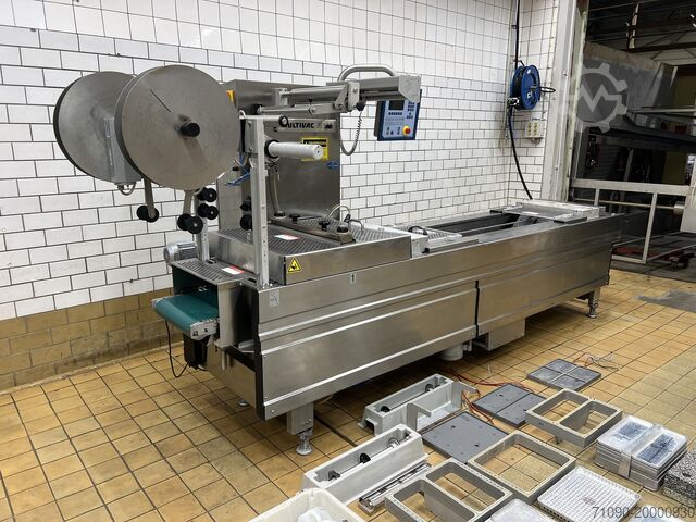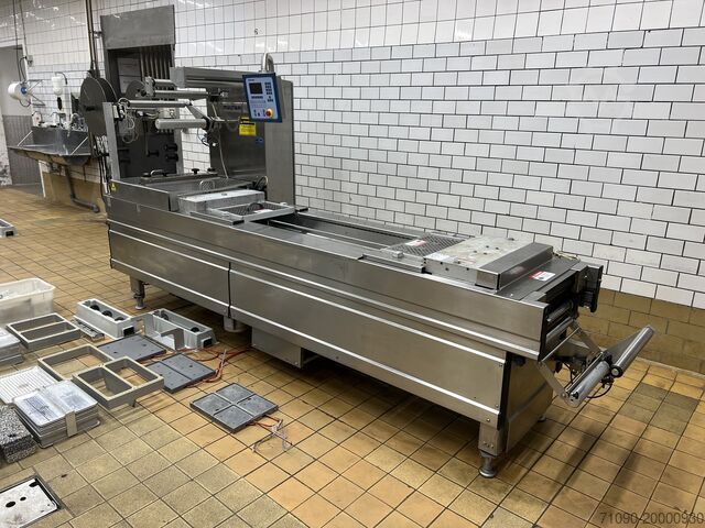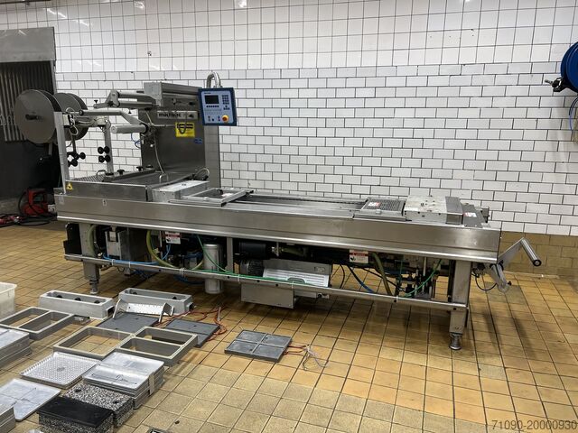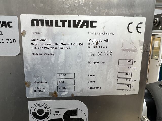 Термоформер Multivac R-140, год выпуска 2005, для жесткой и мягкой плёнки. Ширина плёнки 422 мм, шаг инструмента 330 мм, встроенный вакуумный насос Busch 100cc, MAP-машина, 4 различных раздельных инструмента.
