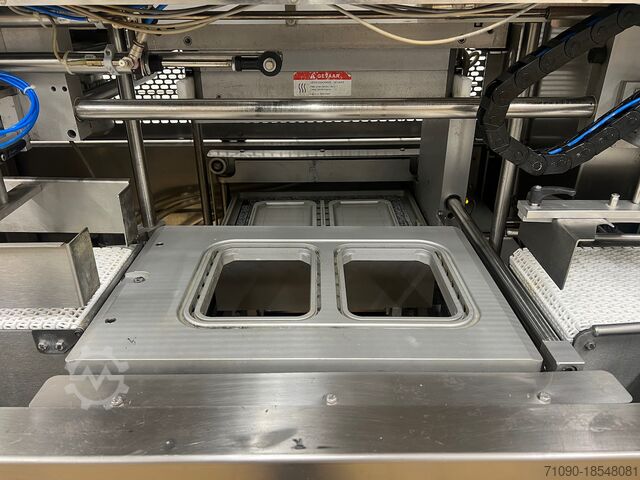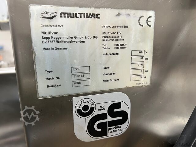 Multivac mod T350 запайщик лотков / производительность скин-упаковки до 12 циклов / мин. Год выпуска 2006. Размеры инструмента 205 x 165 мм.
