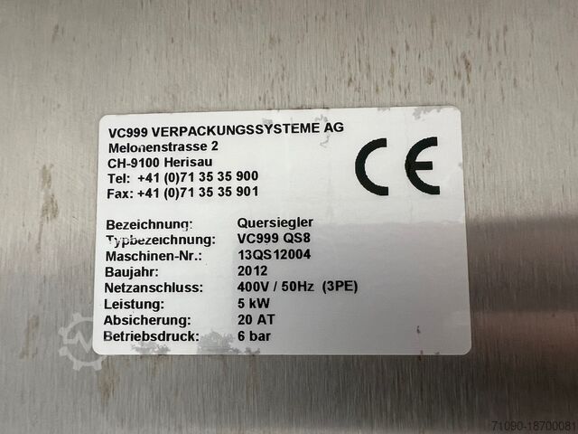 VC-999 QS8 + VC-999 K8T1A-SP ИДЕНТИФИКАЦИОННЫЙ НОМЕР 2922 Камерная машина VC-999 с сопутствующей упаковочной машиной VC-999, которая ранее использовалась для больших целых сырных блоков. Размеры 480 x 190 см H 225 см. Bljc Rjv Iz Hve Nc Ifnji