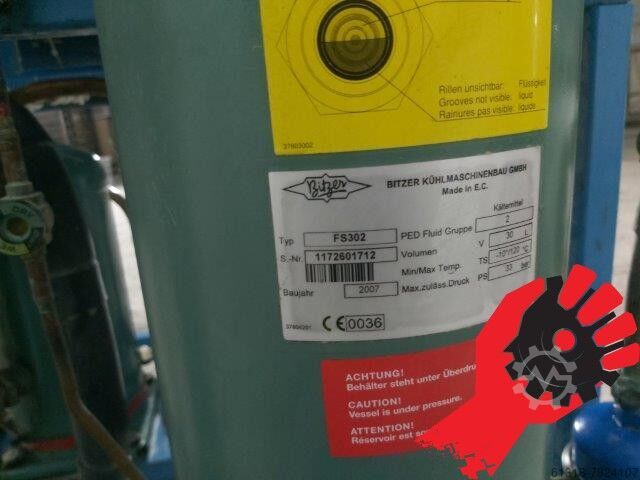 Спиральный компрессор ESH736Y-40S/sn 1072500425, 2 вертикальных ресивера Bitzer FS 152/sn 1172402177 и Bitzer FS 302/sn 1172601712.