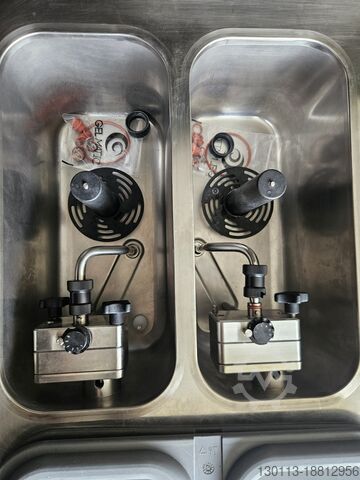 Продается 3-х лопастная машина для приготовления мягкого мороженого Gel matic 250 с воздушным охлаждением в практически новом состоянии. В комплекте с новым запасным комплектом прокладок, смазанными насосами, новыми уплотнениями насоса. По этой цене и в таком состоянии доступны 5 машин, включая версию с воздушным охлаждением. Производительность 29 кг/ч, емкость бака 2x10 л, сенсорный экран, настольный дизайн. 380В