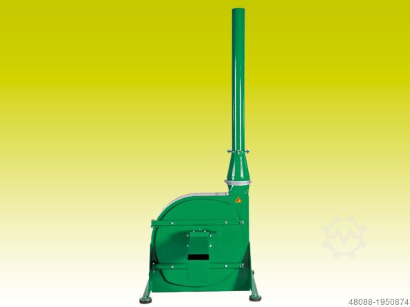 Молотковая мельница с вентилятором, загрузочной воронкой и сменными ситами для регулировки тонкости измельчения.