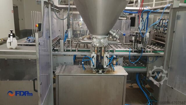 Польская машина, построенная по высоким стандартам, с полным сенсорным управлением. 4-х полосная линейная линия для наполнения и герметизации горшочков. Наполняет фольгированные горшочки для паштета. Идеально подходит для паштетов, продуктов животного происхождения, мясных паст и т.д. В почти новом состоянии.