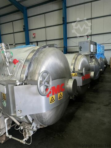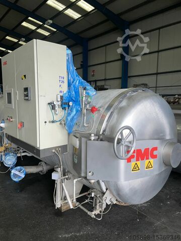 Автоклав/реторта JBT FMC Foodtech в хорошем состоянии с обновленным управлением. Поступил напрямую от европейского производителя паштетов. Однодверный, диаметр 1,4 м, вместимость 6 тележек. У нас также есть версии 2 x 4 тележки A144 с того же завода.