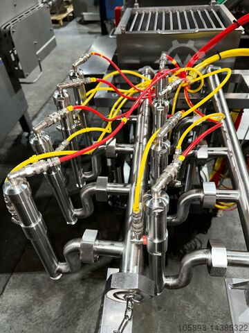 Система отсадки соусов с 8 головками для установки над термоформовочной машиной Multivac. Дозирует соусы и подливы в пакеты на машине Multivac. Куплена новой в 2019 году, а вскоре после этого завод закрылся из-за COVID