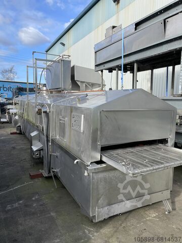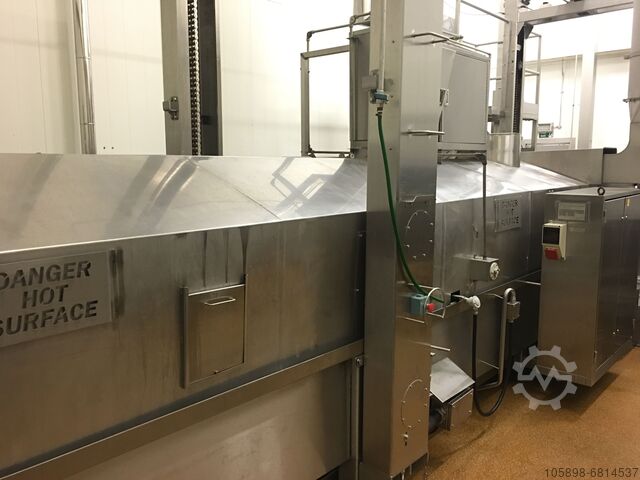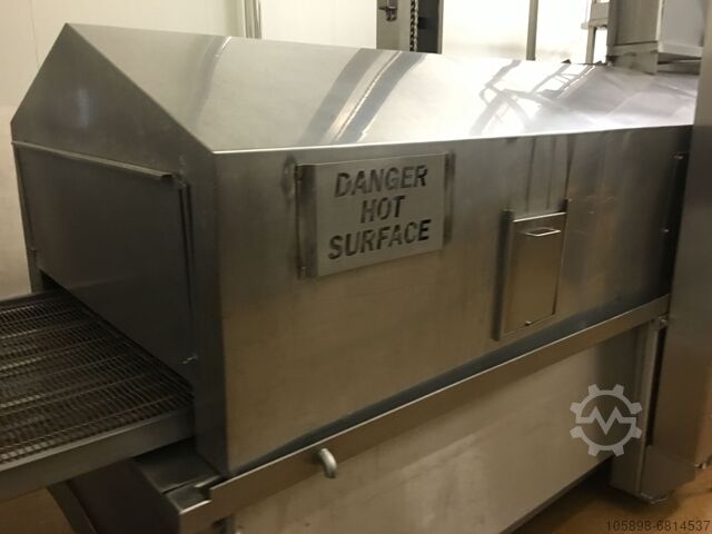Ухоженная фритюрница 7 м x 1000 мм с термомаслом, прямо с закрытой птицефабрики, где она жарила куриные гамбургеры и наггетсы. В комплекте с верхним удерживающим ремнем. Подъемные механизмы для подъема навеса были утеряны компанией-хранителем, поэтому их придется изготавливать заново. Машина была в прекрасном состоянии до того, как была вывезена с фабрики после ее закрытия в 2016 году.
