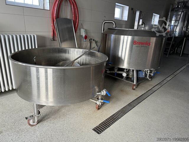 Продается полное пивоваренное оборудование, включая: систему варки, емкости для брожения и хранения, холодильную установку, систему розлива, этикетировочную машину, опционально все права на товарные знаки, изображения и домены бренда Hebenbräu. Компоненты пивоваренной системы: Brewiks Microbrewery 500 литров - 1 x заторный чан / сусловарочный чан (емкость 760 л, сенсорная панель управления, электронагрев, насос, изоляция, установлен на роликах); 1 x фильтрационный чан/вирпул (емкость 840 л, функция вихревой ванны, насадка для долива, охладитель сусла (трубчатый теплообменник), нагрев через настенный теплообменник, на колесах); 5 x напорных баков / бродильно-складских резервуаров ZKT10HL (общий объем 1350 л / бак, двойная рубашка из нержавеющей стали, охлаждение в цилиндре и конической части, датчик температуры PT 100); 1 холодильный агрегат Chilly MAX 90 LT; 1 машина для розлива в бутылки; 1 этикетировщик. Более подробная информация по запросу и на нашей домашней странице.