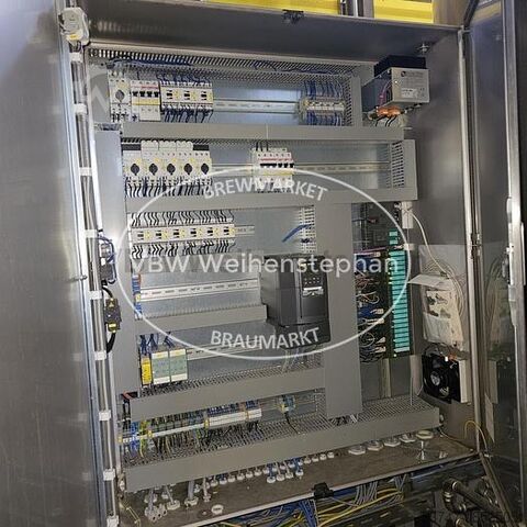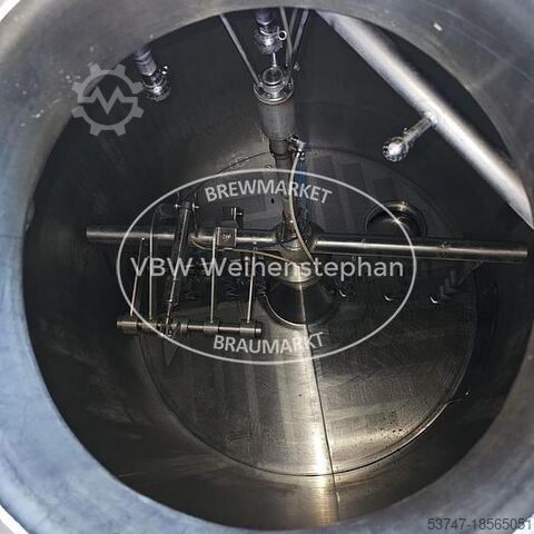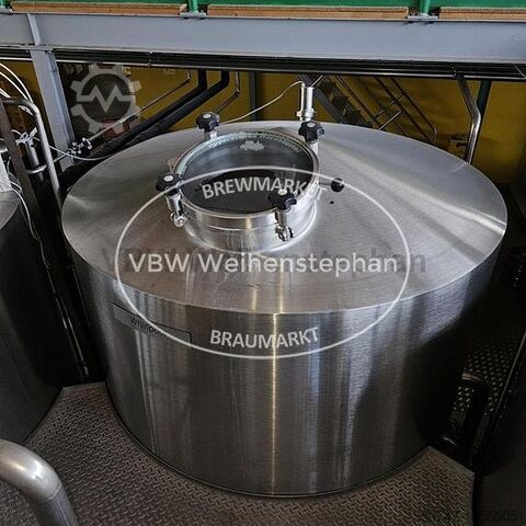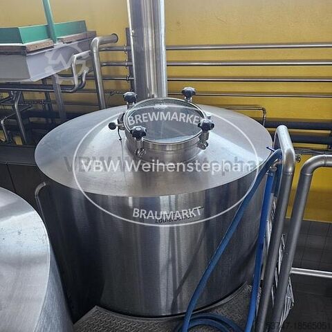 Варочный цех на 10 гл с 4 сосудами из Нордхаузена, состоящий из следующих компонентов: - 2 вальцовые мельницы: от Mühlen-, Maschinen- und Anlagenbau GmbH Zeitz производительностью 200 кг/ч. Диаметр роликов составляет 250 мм, ширина — 40 мм. - Заторный чан: изготовлен из нержавеющей стали с подогревом днища и рамы для нагрева насыщенным паром. - Фильтровальный чан: изготовлен из нержавеющей стали с двухрычажным измельчительным механизмом и частотно-регулируемым фильтрационным насосом. - Сусловарочный котел: изготовлен из нержавеющей стали с основанием и рамой, нагревательной поверхностью для нагрева насыщенным паром. - Гидромассажная ванна: изготовлена из нержавеющей стали с изоляцией основания и рамы. С насосом для охлаждения сусла. - Охлаждение сусла: двухступенчатый пластинчатый теплообменник производительностью 10 гл/ч и аэрация сусла. - Бак для горячей воды: изолированный бак из нержавеющей стали с нагревательным змеевиком для повторного нагрева и насосом для горячей воды.