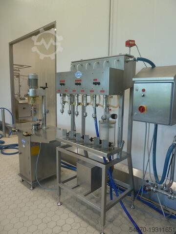 Машина изготовлена из нержавеющей стали и особенно подходит для розлива фруктовых соков, вина, спиртных напитков, уксуса и других негазированных напитков в стеклянные бутылки. Можно использовать бутылки различных форм и размеров без необходимости использования форматных деталей. Система вакуумного наполнения обеспечивает точность наполнения, при этом излишки продукта в бутылке отсасываются и возвращаются в контейнер для продукта. Процесс наполнения осуществляется с помощью пневматически управляемых наполнительных клапанов.
