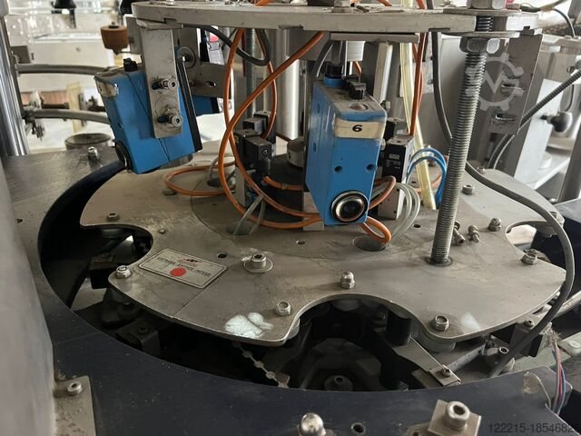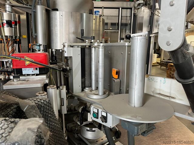Обзор Эта самоклеящаяся этикетировочная машина Auxiemba Gacela RSA 9-III-IZ была произведена в 2000 году. Она использовалась для этикетирования бутылок кава (игристое вино) с производительностью 6 000 бутылок в час и может быть адаптирована для вина (8 000–10 000 бутылок в час). Машина уже демонтирована и складирована. Вся техническая документация доступна. Технические характеристики Производительность: 6 000 бутылок в час для кава 8 000–10 000 бутылок в час для вина Станции этикетирования: 3 головы (фронтальная, обратная, кольеретка) Возможна установка четвертой головы Подача этикеток: 3 станции размотки двойных рулонов с функцией сращивания Электрические характеристики: Напряжение: 3 x 380В Частота: 50 Гц Мощность: 20 кВА