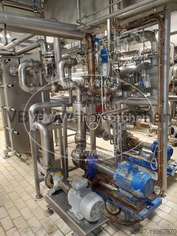 Кратковременная пастеризация для стабилизации качества напитков. Нагрев продукта осуществляется с помощью пластинчатого теплообменника, при этом продукт выдерживается в течение заданного времени при температуре пастеризации, а затем охлаждается. Установка состоит из трубчатого теплообменника с буферным баком для горячей воды для обеспечения горячей воды и пластинчатого теплообменника для кратковременной пастеризации продукта.
