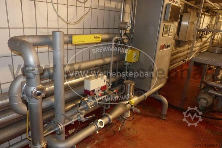 Оснащение: 1 монитор PLATO для inline-определения начального сусла пива (ультразвуковой зонд типа MP-25, контроллер модели 8100), 1 регулирующий клапан расхода воды типа S 375, 2 электромагнитных расходомера (тип Promag 50 H, 1 на водяной линии, 1 на линии пива), обратный клапан на водяной линии, 3 пневматических дисковых клапана