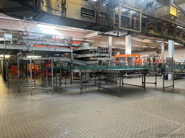 Обзор Эта асептическая PET-линия розлива для фруктовых соков, напитков с содержанием сока и шорле была произведена немецкой компанией KHS в 2005–2006 гг. Подходит для негазированных и газированных продуктов (до 5 г/л CO₂), с фруктовой мякотью или без нее. Линия охватывает все этапы процесса: выдув, розлив, этикетирование, упаковку и палетирование, рассчитана на бутылки объемом от 0,5 л до 1,5 л с разными типами крышек. Номинальная производительность составляет примерно 27 000 бутылок в час при розливе 1,0 л негазированной продукции. Оборудование работает до примерно февраля/марта 2026 года, возможен осмотр по согласованию. Технические детали Производительность: до 27 000 бут./ч при 1,0 л негазированной продукции Объем бутылок: от 0,5 до 1,5 л PET Продукты: негазированные напитки, газированные до 5 г/л, с или без фруктовой мякоти Крышки / горлышко: 26/22, плоская крышка 38 мм, возможно спортивная крышка Годы выпуска основных машин: 2005–2006, отдельные узлы моложе (например, сервоприводный укупорочный автомат — 2023 г., этикетировщик – 2013 г., палетообмотчик – 2017 г.) Комплектация Автомат выдува бутылок KHS Blomax 16C (2005–2006 гг.) с чиллером Riedel Ополаскиватель KHS FR-DR (ACF) 140 28/38 Розливочный блок KHS Innofill DNVF-PET ACF 100/15 SV, 100 розливных головок, 15 укупорочных позиций, сервоприводная закрутка (2023) Капельница азота VBS, стерильный танк, система управления розливом KHS Metec Подача крышек Eckel & Sohn, дезинфекция крышек KHS Innoclean KR9 (плоская крышка) и SC4 Twin 28 S 04 (спортивная крышка) Чистое помещение с вентиляцией M&W, Zander/Smardt OPK Транспортировка бутылок и воздуха KHS, Lanfranchi Инспекция Инспекция полных бутылок Heuft Squeezer Этикетирование Krones Starmodul (2013 г.) с Contiroll + 2 агрегатами AutoCol + сушилка Krones Linadry Инспекция этикеток Heuft FinalView Упаковка Трей/шринк-пакер KHS Kisters Innopack TSP 050 V TPFO Картонный упаковщик для групповой упаковки KHS Kisters Innopack 320/70 (1999 г.) Аппликатор ручек KHS Carry Strip Master CSM 050-2 Палетирование и обмотка Палетайзер KHS Innopal Markant 1BSH2-PL + Innopal Markant 1BSH2/1-PL (оба 1999 г.) Обмотчик Haloila Octopus 1845S (2017 г., сейчас на другой площадке)