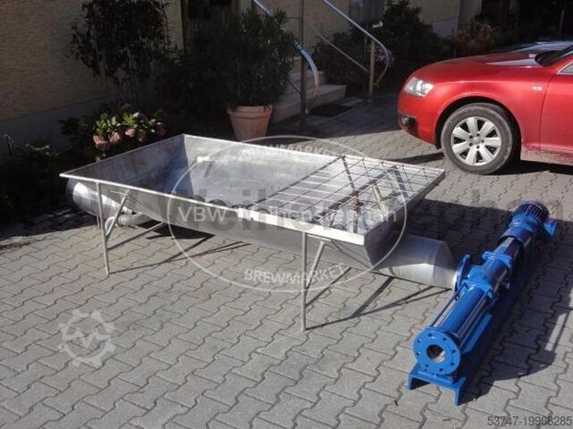 Оснащение: насос для выгрузки кизельгура, производитель Allweiler, тип SNP 2002, H4P1; Q л/мин: 100; Nl(мин) 280. Фланцевые соединения: вход DN 100, выход DN 80; Лоток для выгрузки кизельгура длиной 1,9 м со шнеком (диаметр 22 см) и приводным мотором; Мотор 1,1 кВт, 1.420 об/мин; Выходы: DN 100 (кизельгур), DN 65 (жидкость); Общие размеры: 2,85x1,195x0,615 м (ДхШхВ)