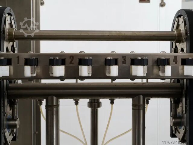 4 ополаскивающих захвата подготавливают и дезинфицируют бутылки.