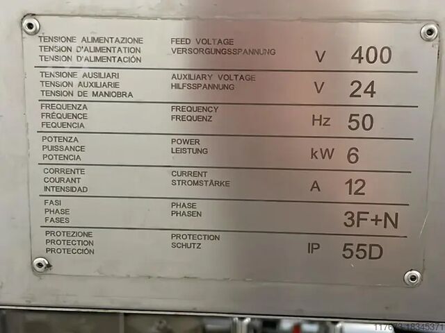 Этикетировочная машина имеет длину 2405 мм, ширину 2200 мм и высоту 1690 мм. Она также потребляет электроэнергию при напряжении 400 В и работает на частоте 50 Гц.