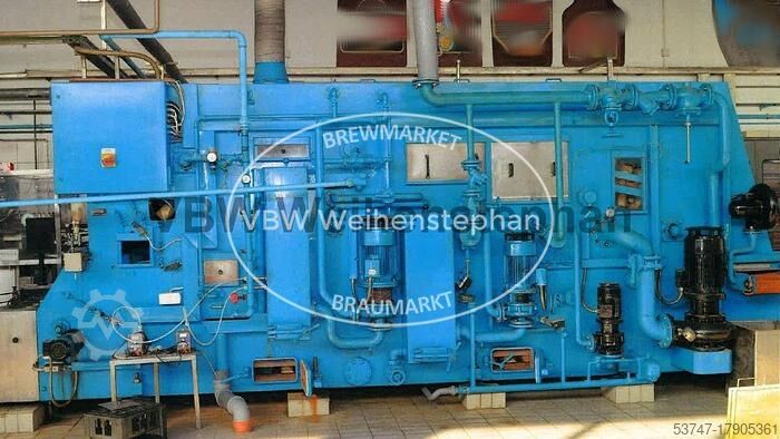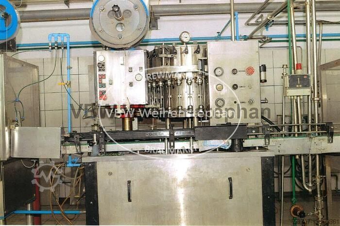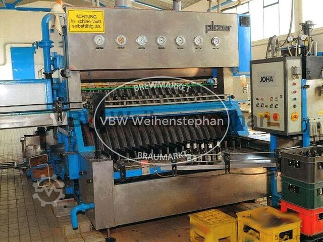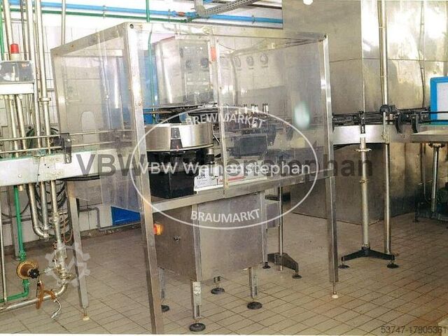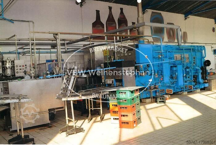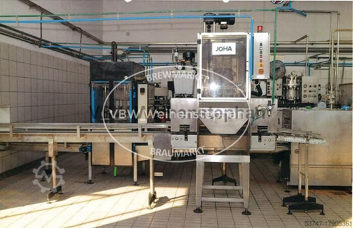 Линия розлива в стеклянные бутылки для пива и безалкогольных напитков для розлива 9000 bph. Включает: - Откручиватель: JOHA тип Smaragt, 1990 года выпуска, с одной откручивающей головкой - Распаковщик бутылок: JOHA тип E100, 1978 года выпуска, с одной упаковочной головкой - Мойка ящиков: JOHA тип KA2N, 1983 года выпуска - Мойка бутылок Pirzer, 1983 года выпуска, с 19 стойками для бутылок в ряд - Инспектор пустых бутылок: Inex тип Optiscan 4s - Наполнитель и укупорщик бутылок: Krones тип 28/7, построенный в 1975 году, с 28 клапанами розлива и 7 станциями укупорки - Укупорщик: Adelski, с 4 станциями укупорки - Этикетировщик: Pirzer, построенный в 1979 году, для этикеток на брюшке и горлышке, с 8 станциями этикетировки - Упаковщик бутылок: JOHA тип A400 Q, построенный в 1977 году, с одной упаковочной головкой