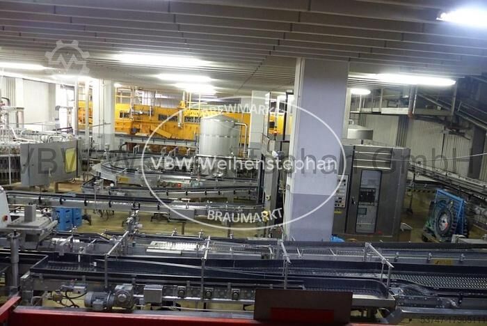Оборудование: укупорочная машина, распаковщик бутылок, мойка бутылок, контроль пустых бутылок, наполнитель и укупорка бутылок, проверка уровня наполнения, этикетировщик, датировка, проверка этикеток, проверка кроненпробки, упаковщик бутылок, проверка полных ящиков, транспортировка бутылок и ящиков
