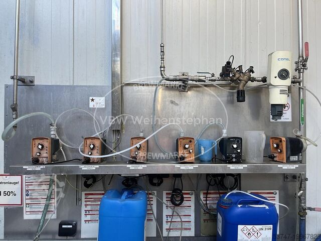 Оборудование: система подачи и выброса бутылок с однопальцевым механизмом, станции дозирования химикатов с насосами-дозаторами, форматные детали для входа и выхода