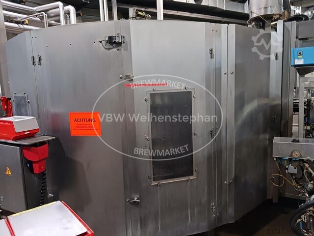 Столовочный наполнитель для бутылок, производитель: компания Krones, короткотрубный наполнитель с двойным предварительным вакуумированием, модель: Mecafill VKVP 084-094, год выпуска: 2000. Укупорочный автомат работает с крышками типа Twist-off и стандартными кроненпробками.