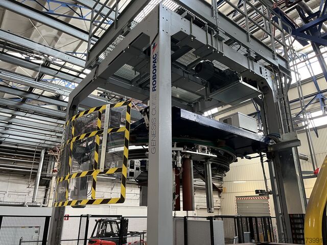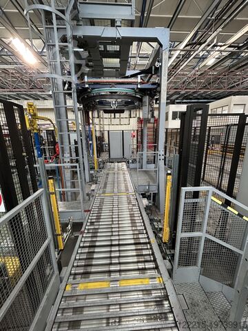 Обзор Эта линия укладки на поддоны и упаковки состоит из паллетайзера Ocme и двух упаковочных машин Robopac Genesis, обе 2014 года выпуска. Линия была разработана для работы с термоусадочными контейнерами и находится в хорошем состоянии. Он подходит для укладки и упаковки поддонов различных форматов и обеспечивает производительность 30 000 бутылок в час, в зависимости от формата. Группировка формирования слоев осуществляется двумя роботами Fanuc. Еще два Fanuc отвечают за укладку на поддоны и укладку промежуточного слоя. Паллетирование и упаковка являются частью комплексной линии, некоторые компоненты которой уже проданы. Технические детали Паллетизатор Производитель: Ocme Модель: Pegasus F450 Год постройки: 2014 Перерабатываемая продукция: Термоусадочная упаковка: ПЭТ 0,75 л 2 x 32 ПЭТ 1,0 л 3 x 2 ПЭТ 1,5 л 3 x 2 ПЭТ 1,5 л 3 x 4 Форматы поддонов: Европоддон 800 х 1200 Чеп Дюссельдорфер 600 х 800 Промышленный поддон: 1000 x 1200 Скорость: 42 000 т/ч Двухполосный, с низкой подачей Оборудование: Магазин пустых поддонов, магазин промежуточных слоев, устройство для вставки промежуточных слоев, защитное ограждение Упаковочная машина (2 шт.) Производитель: Robopac Модель: Genesis Cube Год постройки: 2014 Дополнительно Функции: Устройство для покрытия пленкой. Форматы обрабатываемых поддонов: такие же, как у паллетайзера. Эргономичное подъемное устройство для Загрузка рулона пленки для верхней обложки