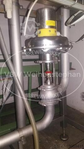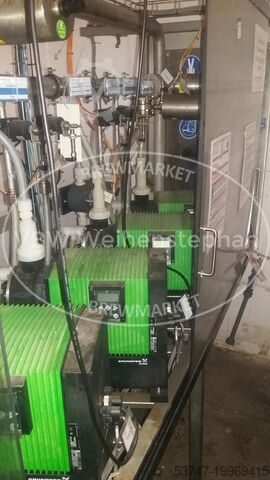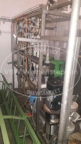 Повышение давления осуществляется вертикальным, многоступенчатым центробежным насосом (фирмы Grundfos) модульной конструкции с обычным всасыванием. С помощью пропорционального регулирующего клапана с управляющей головкой имеется возможность индивидуально подстраивать отдельные зоны очистки под соответствующие требования. Машина (дополнительно): бустерная станция с дозировочными насосами для химикатов. Местоположение / позиция: вертикально, на раме с защитным экраном. Оборудование: центробежный насос (фирмы Grundfos), 1 датчик давления, 4 мембранных дозировочных насоса с дозирующей головкой из PVDF и микропроцессорным управлением, 4 расходомера PVDF для мембранных дозировочных насосов, 4 точки впрыска, индуктивный расходомер (фирмы Endress + Hauser).