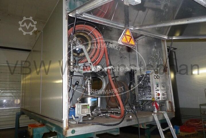 Транспортный танк Bierdrive, установленный в транспортное средство, с CIP-распылительной головкой и люком. Включает измерительную установку (макс. расход: 120 л/мин). Машина (дополнительно): горизонтальный резервуар в контейнере. Вместимость: 7200 л. Рабочее давление: 2 бар. Рабочая температура: 20 °C. Длина: 7,25 м. Ширина: 2,4 м. Высота: 2 м. Оснащение: управление, насос, катушка для шланга, расходомер, кабельная катушка, арматура, CIP-распылительная головка, люк.