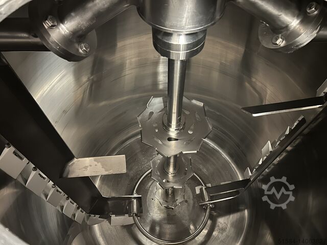 2001 г., нержавеющая, смесительная емкость с рубашкой объемом 3500 л, верхнее расположение перемешивающей и скребковой поверхности, центральный смесительный вал с высоким сдвигом, с центробежным насосом, 3Ph
