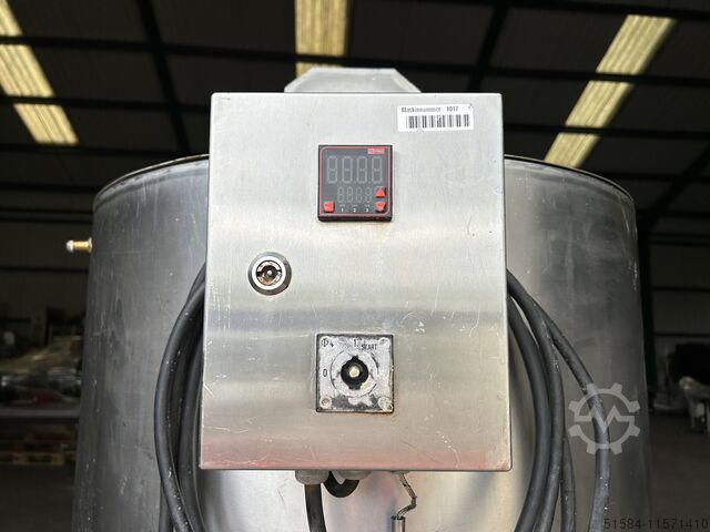 Нержавеющая емкость для смешивания объемом 500 л, с рубашкой, верхним расположением двигателя с перемешивающей и скребковой поверхностью, центральной нижней разгрузкой, 3Ph