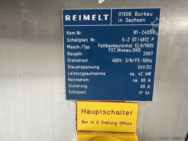 Мы продаём Reimelt EL6 / 100 S. Установка использовалась только для тестовых целей в пекарне. Благодаря этому она находится в превосходном, безупречном состоянии. Это также означает, что установка очень мало работала за эти годы. За час можно производить до 1000 берлинских пончиков. Также возможно выпекание творожных шариков и пряных пончиков (Spritzkuchen). Помимо этого, установка оснащена баком для очистки и автоматической регулировкой жира. Найти аналогичную установку в таком состоянии невозможно :-)
