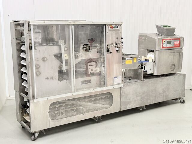 Интегрированная формовочная станция с роликом предварительного давления, тяговым ремнем, нижней и верхней лентой с плавной регулировкой скорости для 2-рядной работы, макс. поперечное расстояние. 180 мм