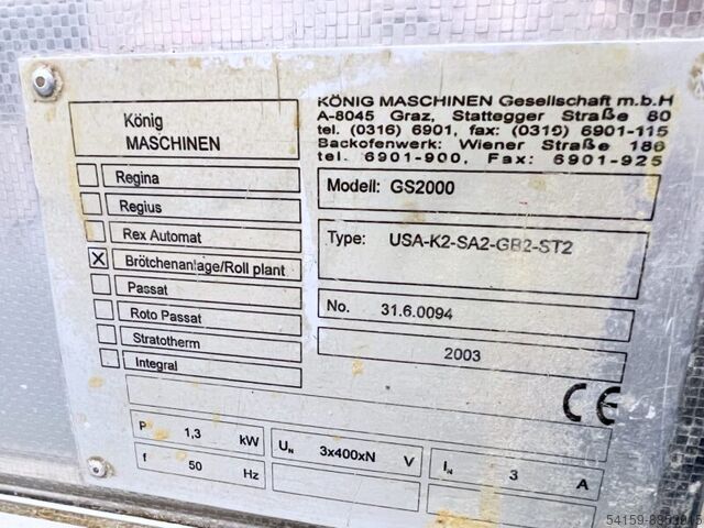 Компактная машина Konig GS 2000 USA-K2-SA2-GB2-ST2 для производства широкого ассортимента привлекательных мелких хлебобулочных изделий, от круглых, длинных, длинных раскатанных до сплющенных изделий