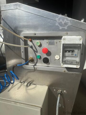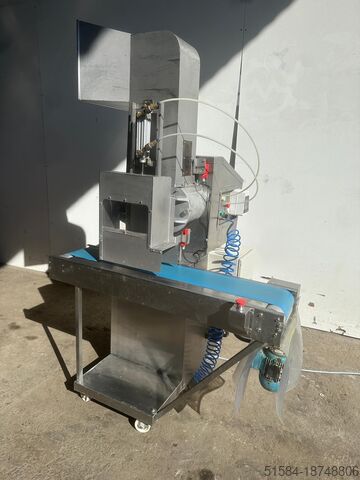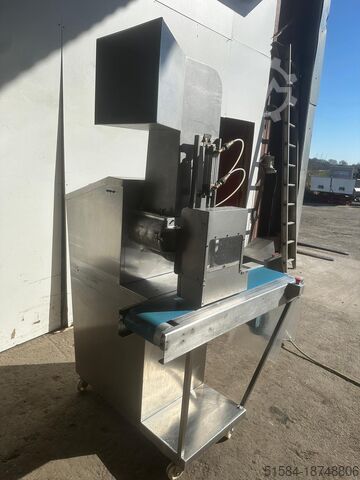 Нержавеющая сталь, со шнековой подачей, с гильотиной, регулируемая скорость, лента 1200 мм x 200 мм, ширина лезвия 130 мм, примеры производительности:; 2 унции (56 г); Одинарное формование; до 1800 в час; Двойное формование; до 3600 в час; 4 унции (113 г); Одинарное формование; до 1800 в час; Двойное формование; до 3600 в час; 11b (256 г); Одинарное формование; до 1200 в час; 8 дюймов (203 мм); Киш; до 1200 в час, мобильный, 3 фазы